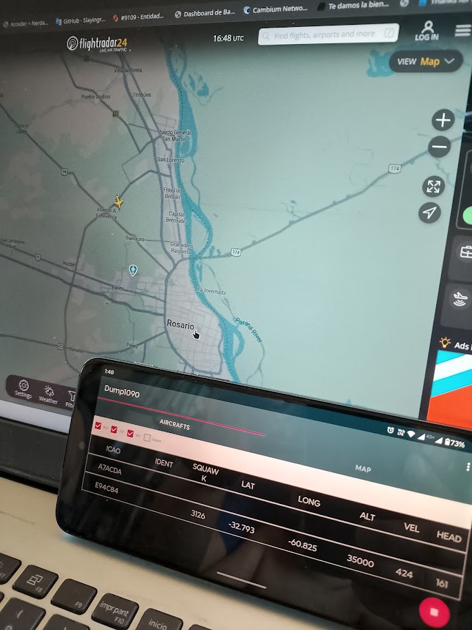 Acá detectando aviones que pasan cerquita. En flight 24 también es válido