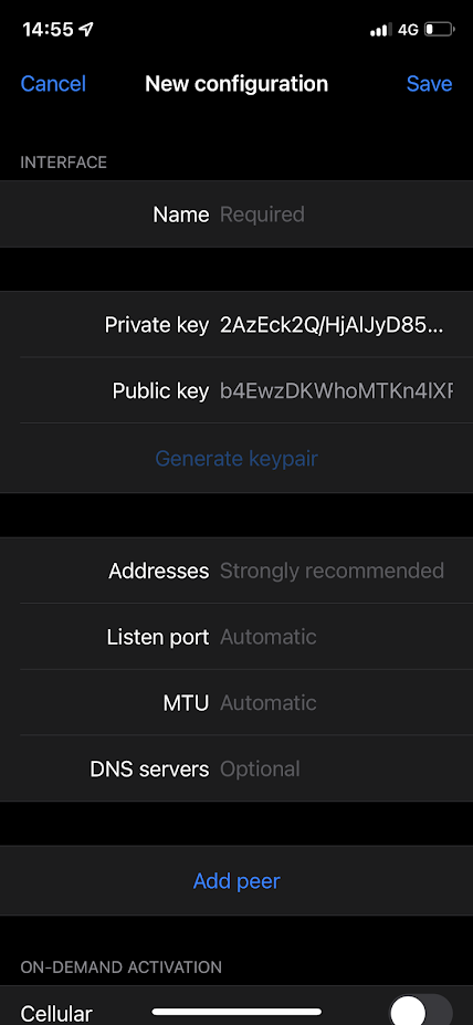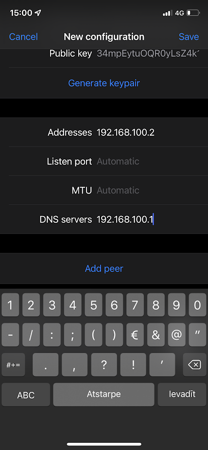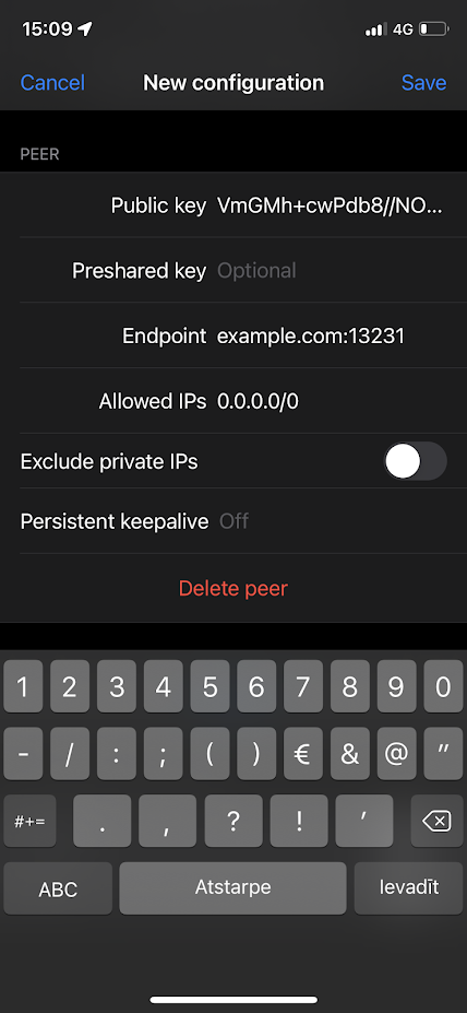 La gran diferencia entre la VPN Road Warrior y Site to Site en Wireguard es que, en los clientes solamente, pondremos la IP del router que actuará de Server en el campo Endpoint.