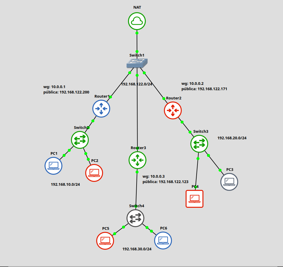 Para los routers clientes va la configuración de Wireguard nada más, todo lo demás repite como en el primero.