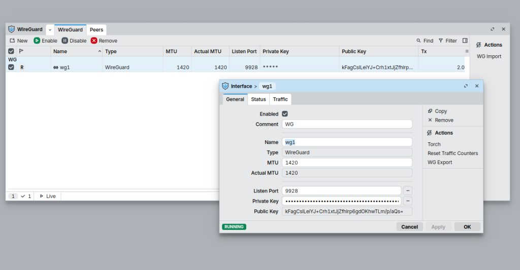 add comment=WG listen-port=9928 mtu=1420 name=wireguard1