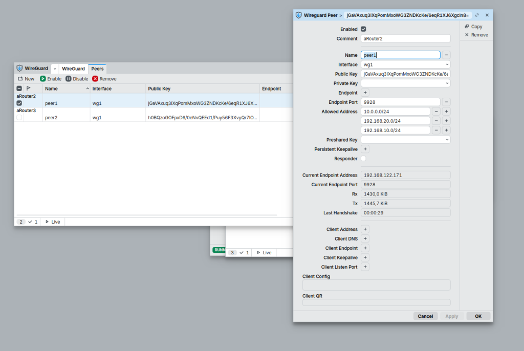aRouter2 endpoint-port=9928 interface=wg1 name=peer1 public-key=\