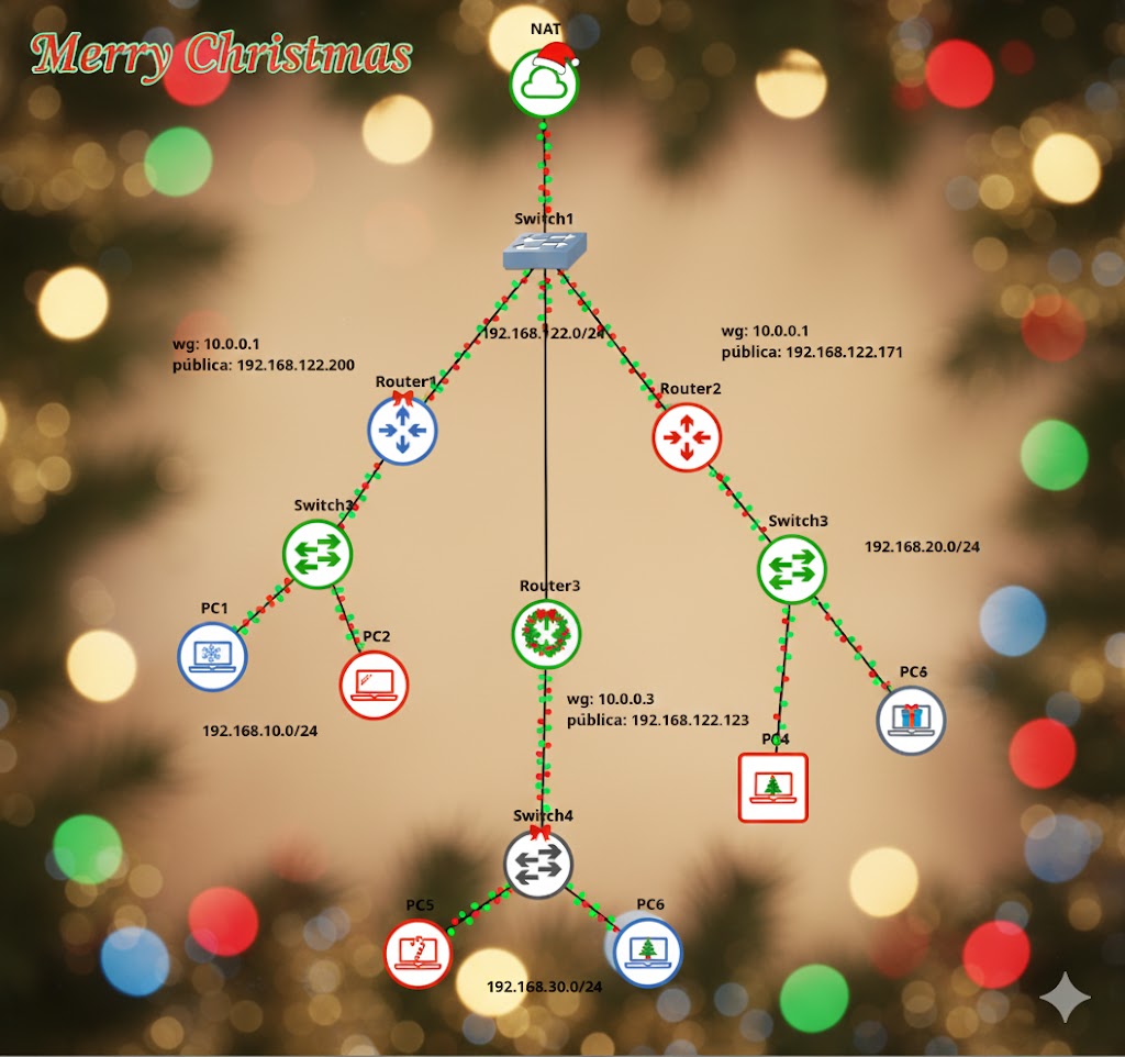 Llegó la navidad y es hora de armar el arbolito. En otro momento escribí un post explicando como conectar una VPN Site to Site con Wireguard. (https://www.nerdadas.com/blog/vpn-site-to-site-con-wireguard/). Esta vez es una VPN Road Warrior, algo que va mejor en una empresa donde sus empleados se conectan a la sucursal central remotamente a diario.